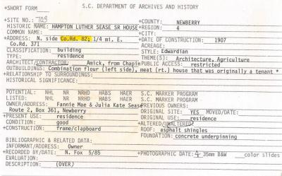 W side Co Rd 371; at junction with co rd 82, SC (Newberry County)