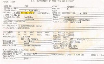 E side co rd 26, 1/4 mi SE co rd 313, Prosperity, SC (Newberry County)