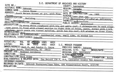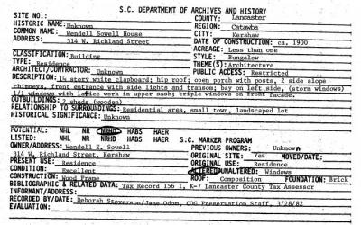 ADDRESS: Matson Street at jct. with Pine Street, Kershaw, SC_