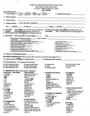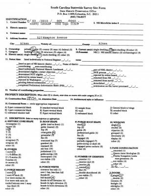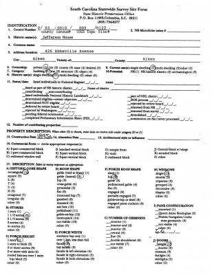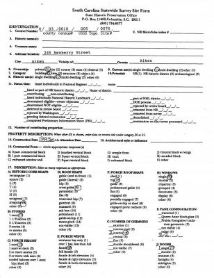 City of Aiken Historic Resources Survey, Aiken County, South Carolina. May 2010