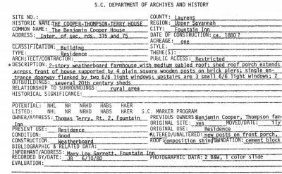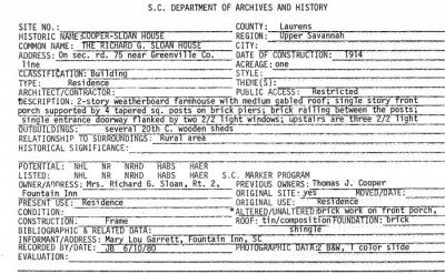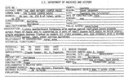 On state Hwy 418 6 miles E of Fountain Inn, Laurens, SC (Laurens County)