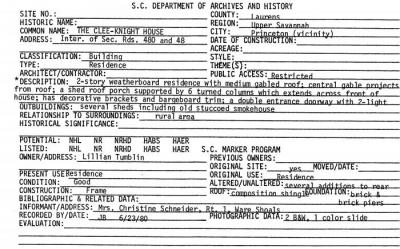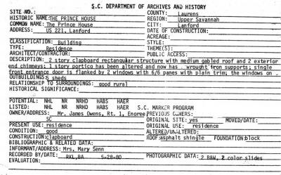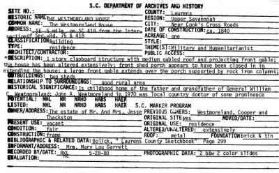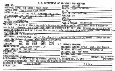 Rd 383, NW of Laurens at crossroads of Rd 23, (Laurens County)