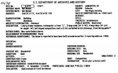N side of unmarked Rd, .05 mi N of SC 125, .2 mi E of CR 52, Vicinity of Van Wyck, SC