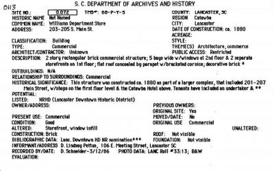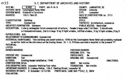 NW corner of int. of E. Dunlap St. & S. Main St., Lancaster, SC