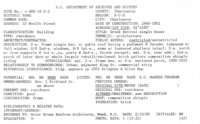 33 Woolfe Street, Charleston, SC