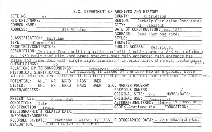 Mt. Pleasant - Town - Historic District, 1984-1985