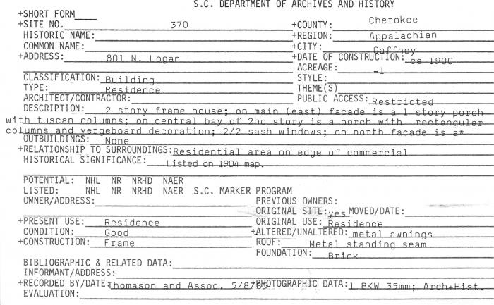 801 N. Logan Street, Gaffney, SC