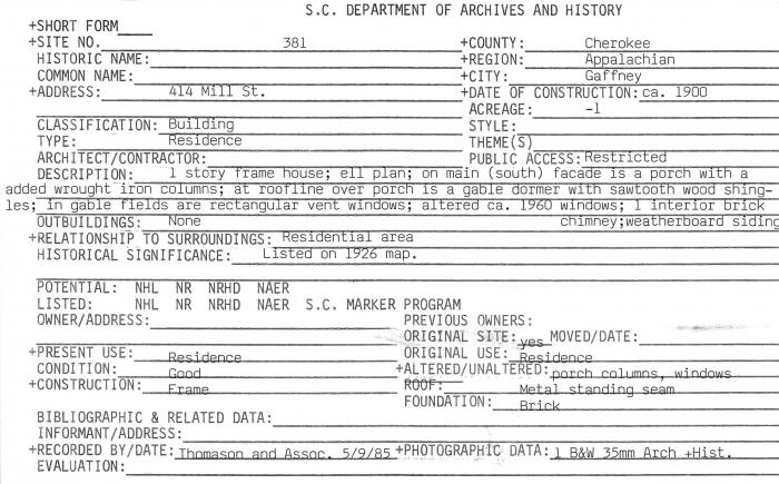 Box 25, Series 108042, Survey of historic resources (county by county data on surface properties), circa 1971-2014