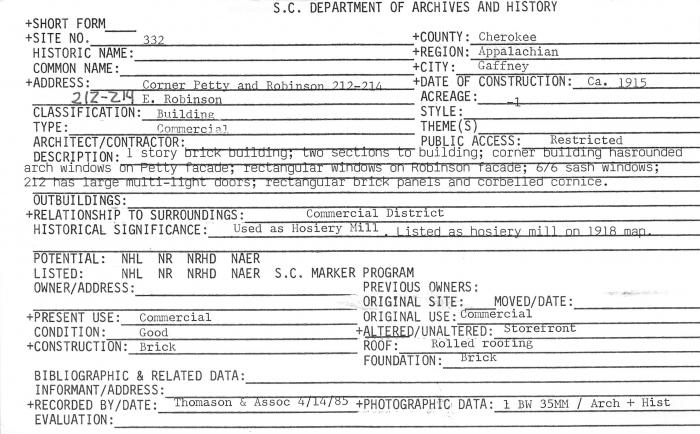 Corner Petty and Robinson, 212-214 E. Robinson, Gaffney, SC