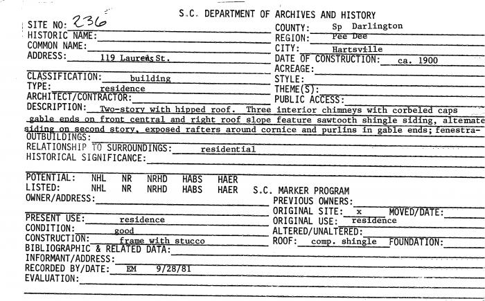 119 Laurens St., Hartsville, SC
