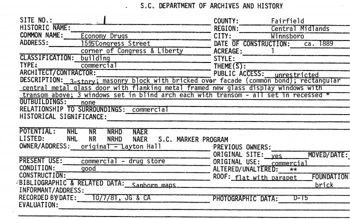 155 S. Congress Street corner of Congress & Liberty, Winnsboro, SC