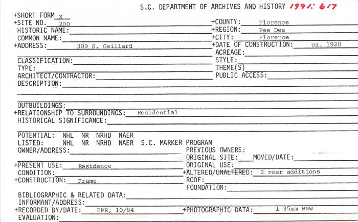 309 S. Gaillard, Florence, SC