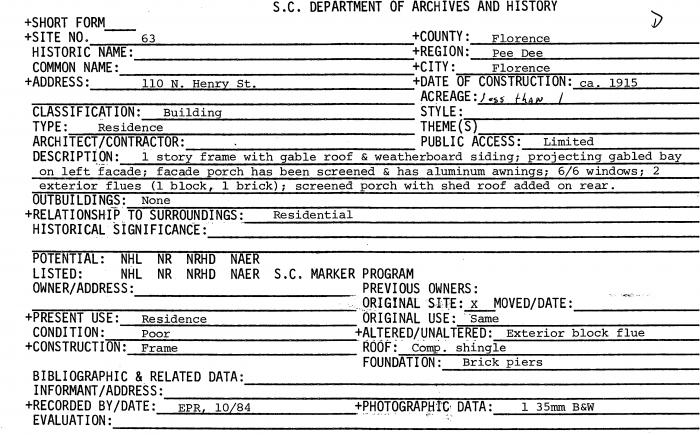 110 N. Henry St., Florence, SC