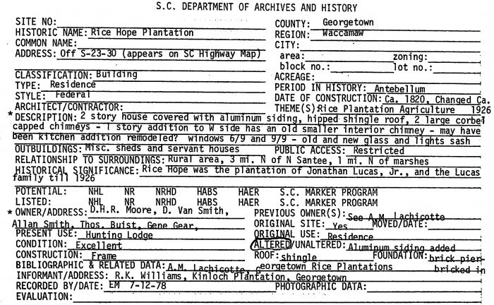 Off S-23-30 (appears on SC Highway Map), Georgetown County