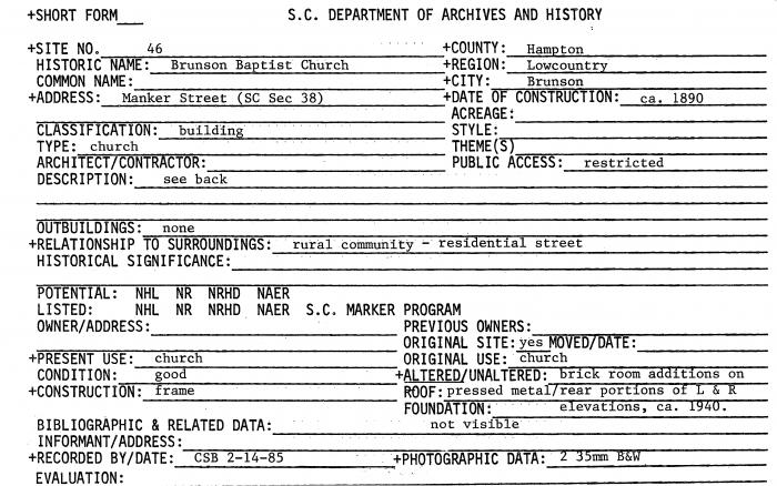 Box 38, Series 108042, Survey of historic resources (county by county data on surface properties), circa 1971-2014