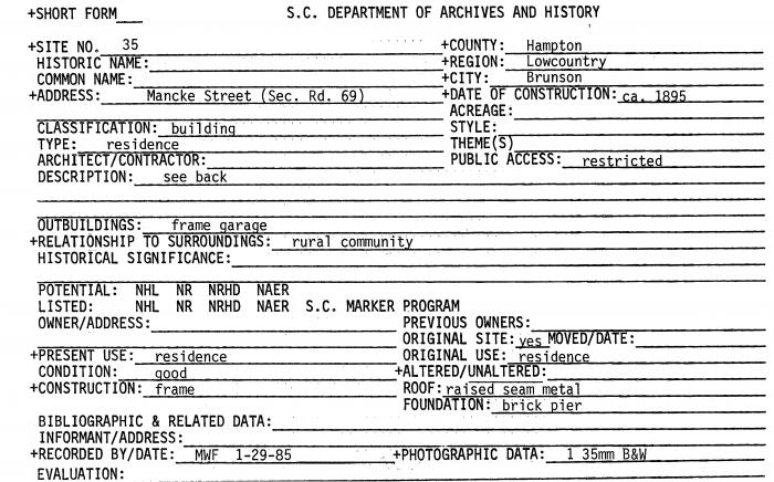 Mancke Street (Sec. Rd. 69), Brunson, SC