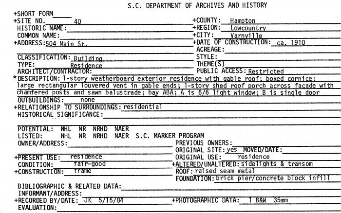 504 Main St., Varnville, SC