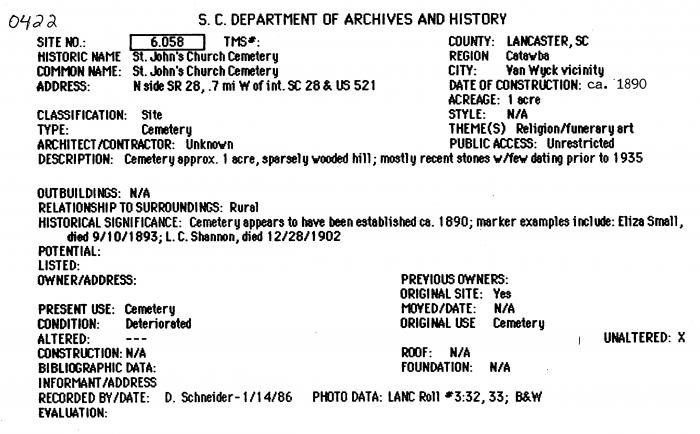 N side SR 28, .7 mi W of int. SC 28 & US 521, Vicinity of Van Wyck, SC