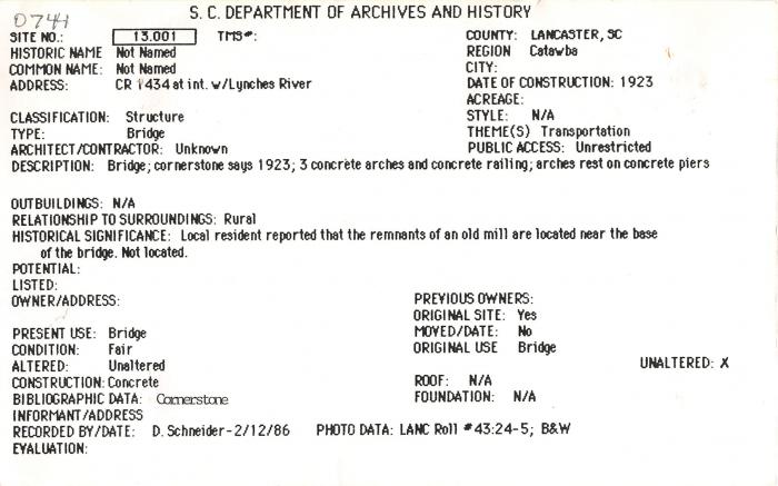cr 1434 at int w/ Lynches River (Lancaster County)
