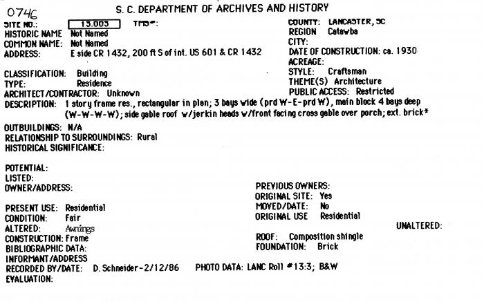 E side CR 1432, 200 ft S of int US 601 & CR 1431 (Lancaster County)