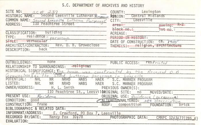 Second Leesville Lutheran Personage