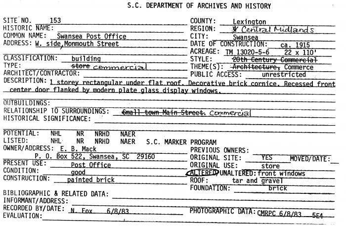 West Side, Monmouth Street, Swansea, SC (Lexington County)