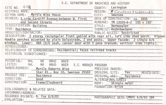 E Side , Cardiff Avenue between W First and Second Street, Swansea, SC (Lexington County)