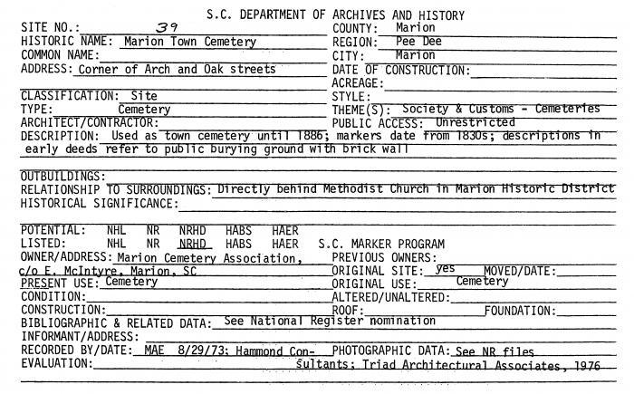 Corner of Arch and Oak Streets, Marion, SC (Marion County)