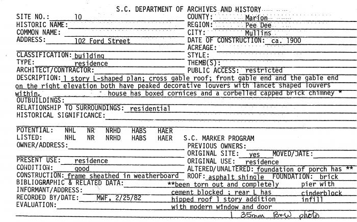 102 Ford Street, Mullins, SC (Marion County)