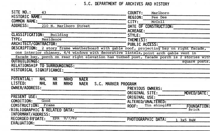210 N Marlboro Street, McColl, SC (Marlboro County)
