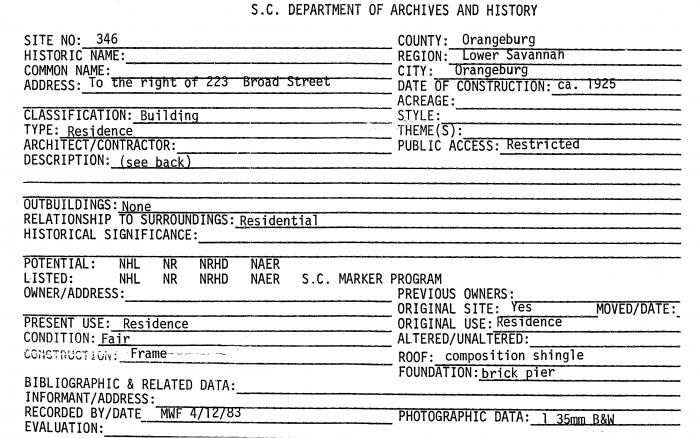 To the right of 223 Broad Street, Orangeburg, SC (Orangeburg County)