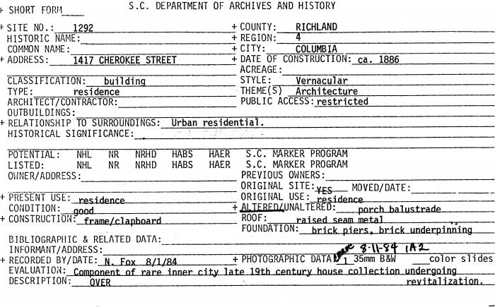 1417 Cherokee Street, Columbia, SC (Richland County)