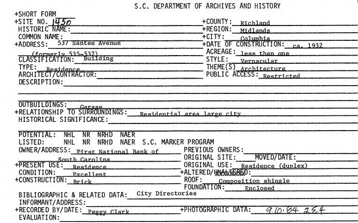 537 Santee Avenue (formerly 535-537), Columbia, SC (Richland County)