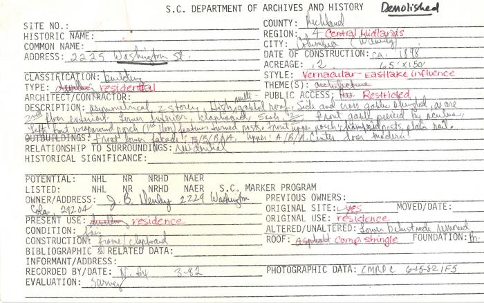 Box 62, Series 108042, Survey of historic resources (county by county data on surface properties), circa 1971-2014