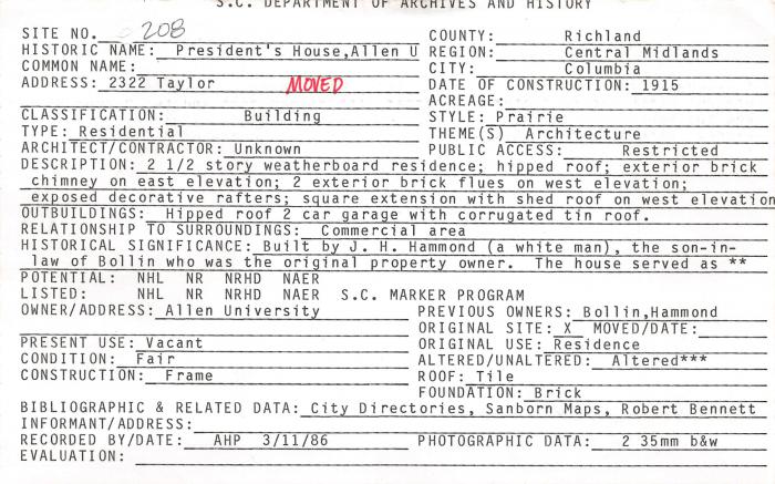 2322 Taylor (moved), Columbia, SC (Richland County)