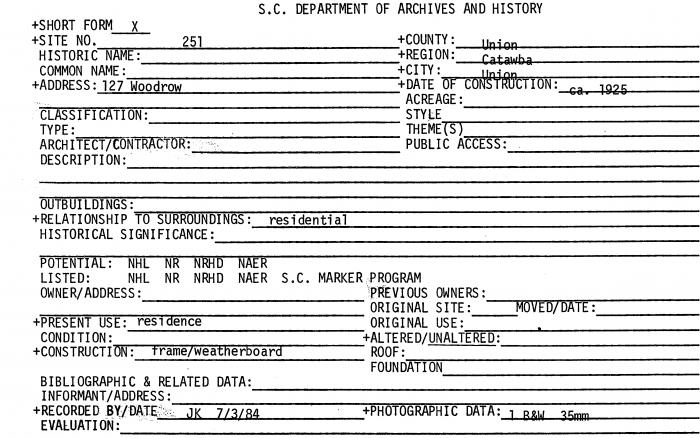 127 Woodrow, Union, SC (Union County)