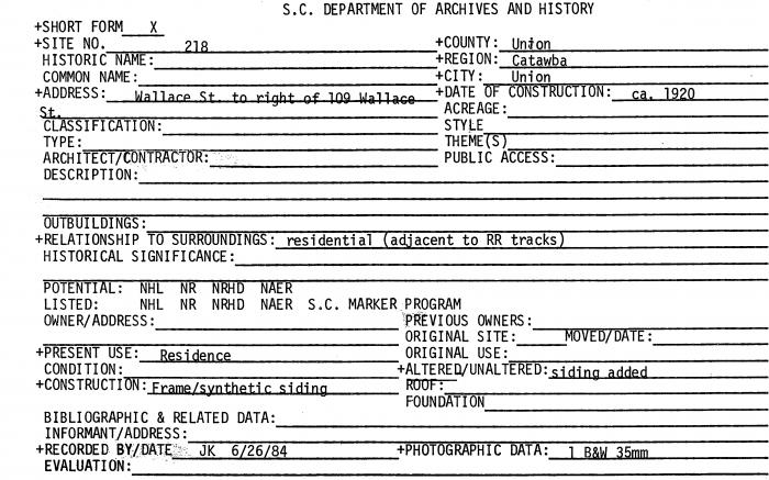 Wallace St to right of 109 Wallace St, Union, SC (Union County)