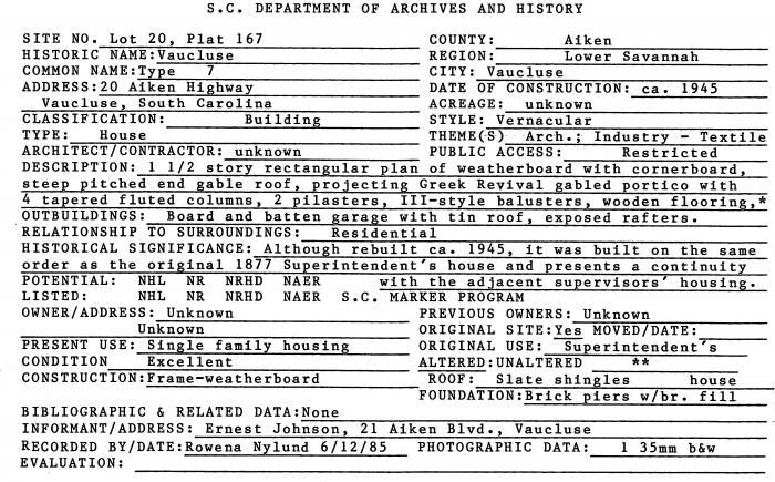 SC Textile Mills and Villages: A Statewide Survey, 1983-1986
