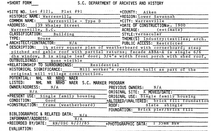 SC Textile Mills and Villages: A Statewide Survey, 1983-1986