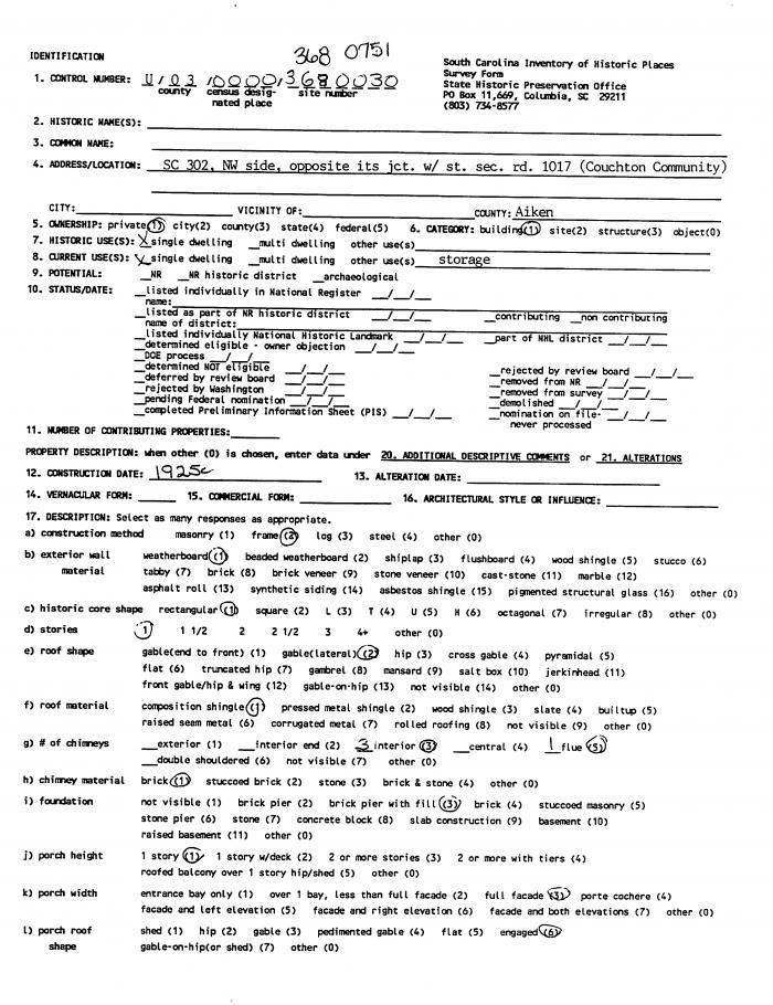 SC 302, NW Side, Opposite its jct w/ st sec rd 1017 (Couchton Community), SC (Aiken County)