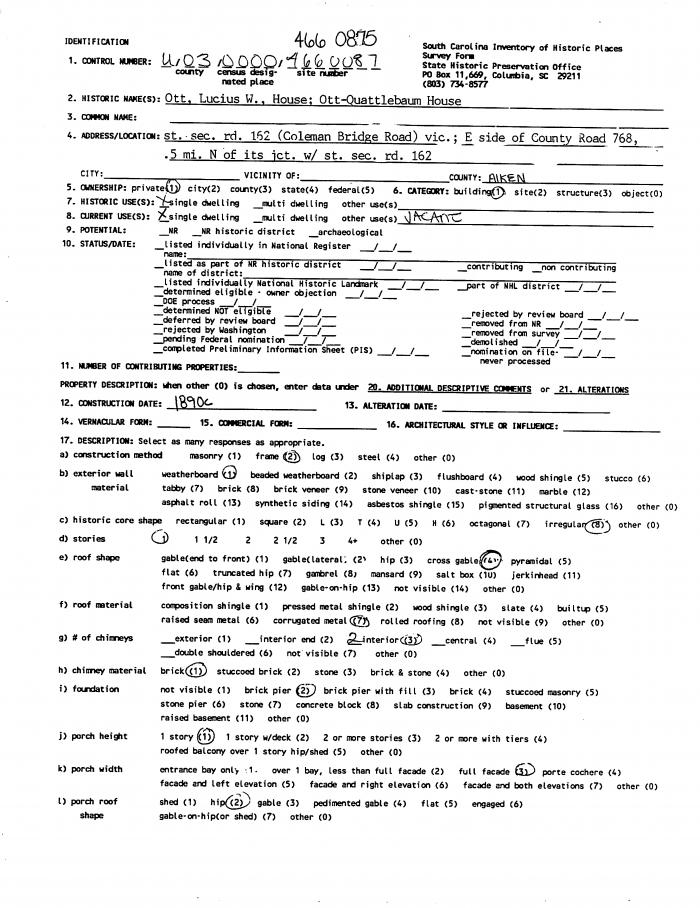 AIKEN COUNTY: SURVEY (eastern portion), 1988