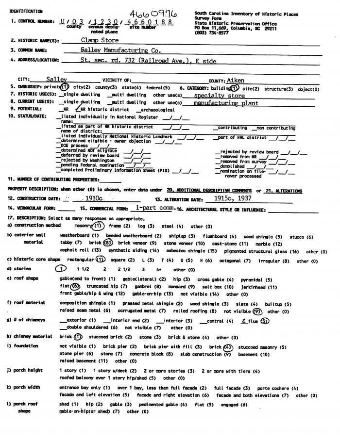 St sec rd 732 (Railroad Ave) E Side, Salley, SC (Aiken County)