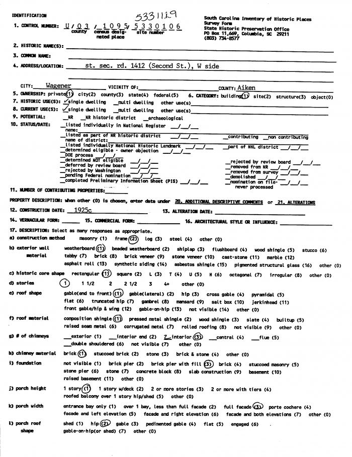 St sec rd 1412 (Second St) W side, Wagener, SC (Aiken County)