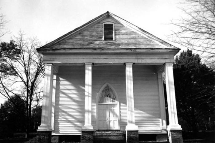(Barnwell First Presbyterian Church) The Old Presbyterian Church is significant for its architecture and as the town of Barnwell’s first Presbyterian Church, which was used as the Barnwell County Courthouse during Reconstruction. It is also one of the few remaining antebellum buildings in town which was almost entirely destroyed by Gen. Sherman’s troops. The church was organized in June of 1832 by the Reverend Dr. James Henley Thornwell, a noted Presbyterian clergyman and later president of South Carolina College. The present church was built ca. 1848 of Greek Revival design with Gothic details. The pedimented gable roof is supported by four large square columns that rest on brick piers. Each window is crowned by a lancet arch with tracery of wood and glass. The church was apparently constructed by a local craftsman and has hand carved interior woodwork and a slave gallery. Listed in the National Register April 13, 1972.