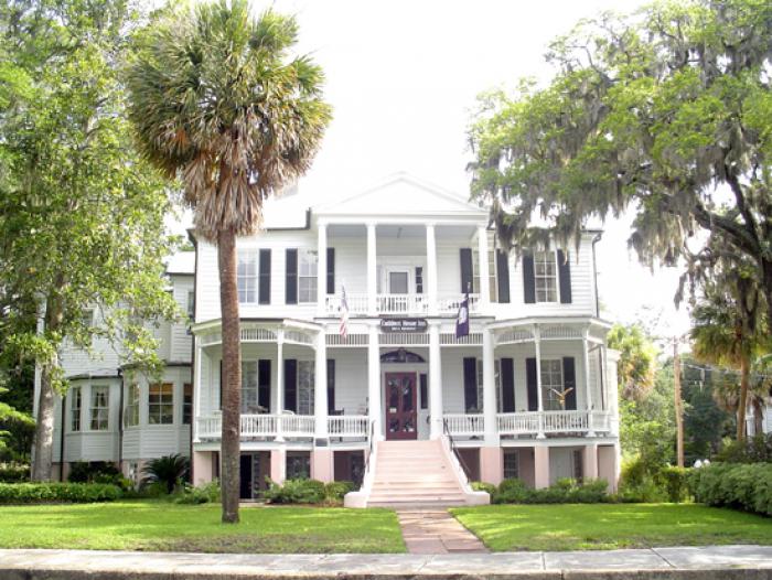 Architecturally, the Cuthbert House is typical of Beaufort’s gracious waterfront homes and is an important component of the Beaufort Historic District. Built ca. 1811, the Federal style Cuthbert House is mounted on a raised foundation with central hallways on both floors extending from front to rear, the white clapboard house is designed to take advantage of the waterfront southwesterly breezes. The façade has a central, double-tiered portico supported by Tuscan columns. First floor entrance is surmounted by a semi-elliptical fanlight and flanked by sidelights and has a pair of shuttered windows to either side. Alterations of the late nineteenth century include the addition of rooms, bay windows, Victorian trim and porches on either side of the central portico. John Alexander Cuthbert was born 1790 in St. Helena’s Parish, South Carolina. In 1811, he married Mary B. Williamson of Prince William’s Parish for whom this house was built. During the Civil War, the Cuthbert House became the property of US Army Brigadier General Rufus Saxton. General Saxton became director of freemen affairs and cultivation in June 1862 when this responsibility was shifted from the Treasury to the War Department. Listed in the National Register June 13, 1972.
