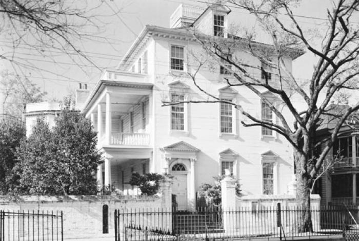 Colonel John Stuart was appointed the King’s Superintendent of Indian Affairs for the Southern District in 1762. By 1765 he obtained full imperial status for his department and was active in handling the Indian affairs of East and West Florida. In 1770 he was named “councillor extraordiary” to advise the governors of Virginia, the provinces and their boards on Indian affairs. Stuart was arrested early in June 1775 on the charge of attempting to incite the Catawba and Cherokee in the British interest. He fled from Lady’s Island to Florida, where he remained until his death in 1779. John Stuart built the three-story frame residence about 1772. The house has a hipped roof, captain’s walk, and one interior chimney. The narrow south façade is flush boarded and the other elevations are clapboarded. First and second story windows in the narrow façade are flanked with dog-ear trim and crowned with bracketed triangular pediments. The fanlighted entrance is located on the left bay of the front elevation. Its frontispiece is highlighted by Corinthian pilasters and a denticulated pediment. The two-story piazza along the west side was added in the 19th century. Bedroom and service additions of two stories were also added at a later period. Listed in the National Register October 22, 1970; Designated a National Historic Landmark November 7, 1973.