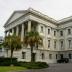Both architecturally and historically, the United States Custom House is an outstanding public building. Its continual use as a custom house completes the commercial history of one of the country’s busiest early ports. Construction began in 1853, with Charleston architect E.B. White serving as superintendent architect, but the building was not completed until 1879. The Roman Corinthian order was carried throughout the structure, not only in the pedimented porticos on the east and west fronts, but also the columns decorating the piers between the windows. The plan is a simple cross with one short and one long axis. Originally there was to have been a rotunda with a dome and skylight at the intersection of the cross arm, but apparently this was eliminated as construction of the building was prolonged and became costlier. The basement story is rusticated while the upper wall surfaces are smooth marble. Windows on both floors are rectangular and pedimented, as are the centrally located entrances on each portico. Surmounting the building is an entablature with a molded architrave, a wide unadorned frieze, excepting the “United States Custom House” carved into the west front in 1964, and a dentiled cornice. Above this is an open balustrade, behind which a low pitched roof is barely visible. Listed in the National Register October 9, 1974.