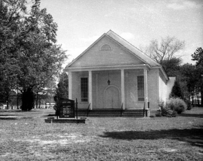 Catfish Creek Baptist Church typifies the significant Baptist tradition in the South Carolina Pee Dee region established by the Welsh Baptists who migrated from Pennsylvania (now part of Delaware) in 1735. In 1802, another congregation, taking the name Catfish, was formed farther upstream from the location of the original Catfish Church, a branch of the Welsh Neck Church. This congregation, the oldest church congregation in Dillon County, built a crude, log church on this site that was replaced, within a decade, by a clapboard building constructed of cypress. In 1849, the cypress church became too small and a larger structure was built which was in use until completion of the present sanctuary in 1883. The present 1883 structure, constructed of pine, is 60 feet long and 40 feet wide. The façade consists of a centrally placed, stilted arch entrance with two, four-panel sliding doors which become recessed into the wall when opened. Side walls have twenty-four pane, rectangular windows identical to those of the façade. The interior remains largely unchanged. Pews of side aisles are unusual in that they are attached to the wainscoting. Convex walls on either side of the altar provide space for baptismal dressing rooms. An educational building, constructed in 1948, adjoins the sanctuary. The present brick steps and brick portico with pediment and four supporting columns were added in 1970. Listed in the National Register January 17, 1975.