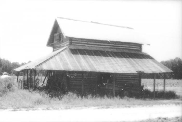 Virtually unaltered since its construction in 1942 by J.L. King (date and name scratched in the chinking on the façade), the Smith Barn is an excellent example of the tobacco barns built in Marion and Dillon Counties between ca. 1895 and the 1950s. The Smith Barn is a five -“room” wooden barn with a metal-covered gable roof and a brick foundation. The walls up to the eaves are hewn timber and mortar chinking. The gable ends are weatherboarded and contain rectangular openings with wooden doors. Metal-roofed sheds supported by wooden posts are attached to the façade and left and right elevation. The façade and rear elevations have wood plank doors. There is a brick double arched firebox on the left elevation. The original flues used for ventilation are still in place. The Smith Barn retains all of the basic characteristics of a traditional tobacco barn, a rapidly disappearing historic resource, and was the most intact barn identified in the two counties. Listed in the National Register December 4, 1984.