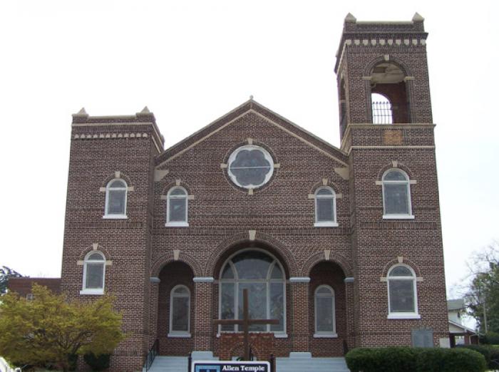 Allen Temple A.M.E. Church, built 1929-30, is significant as the first A.M.E. church in Greenville, and architecturally significant as an excellent example of early twentieth century Classical Revival ecclesiastical design by Juan Benito Molina, a Cuban-born and educated architect, the only black architect practicing in Greenville in the early twentieth century. Organized during Reconstruction as a mission church, Allen Temple A.M.E. was formally organized as a separate congregation in 1881. The church is a large gable-front, steel-frame brick building laid in American bond, with projecting twin towers of unequal height, set upon a partially-subterranean brick basement foundation that features a soldier course water table. A rowlock brick course is located between the water table and the facade's first floor windows and wraps the building at the window sill level. Other architectural features along the upper facade and other elevations include another bordered soldier course band around the entire building, square cast-stone panel insets on each pilaster that align with the bordered soldier course, and a rowlock brick band at the height of the pilaster capitals. All windows feature cast stone sills, wood frames, leaded stained glass (both geometrical and pictorial), keystones and impost blocks. The church's west tower is three stories in height and contains a large open arched belfry that once housed the church's bell, with belt courses, cornices, corbels and pyramidal finials at each corner of its roof's parapet. The two-story Dreher Educational Building was added in 1949. To the rear of the church is a Craftsman bungalow residence, built ca. 1920, but sheathed in brick between 1929 and 1949, long used as the church parsonage, that contributes to the significance of the Allen Temple A.M.E. Church. Listed in the National Register April 16, 2010.
